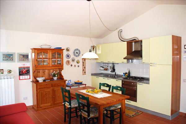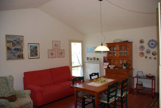 L'ambiente interno (60 mq) è costituito da: un ampio soggiorno-cucina con divano letto a due posti, una poltrona, la tv, uno stereo, una camera da letto matrimoniale; un bagno con doccia e un piccolo ripostiglio con lavatrice. Il tutto è arredato in modo confortevole e con buon gusto per contribuire a realizzare una vacanza rilassante e tranquilla, durante la quale si possa gustare la pace e la serenità della campagna.