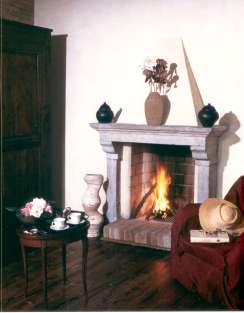 Un accogliente salone con camino è un suggestivo ambiente per cerimonie e ricevimenti.