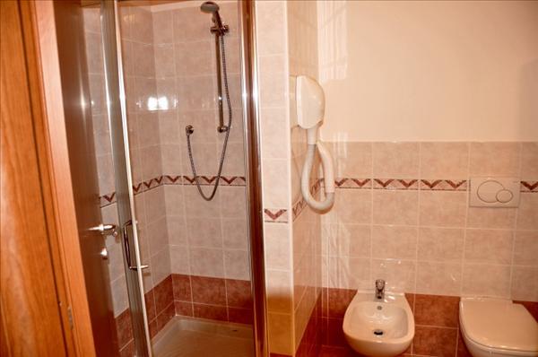 Bagno privato con doccia, lavabo, bidet e wc, asciugacapelli.