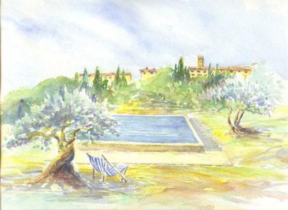 Subito sotto il borgo, in un campo circondato da ulivi, è a disposizione degli ospiti una bellissima piscina di 18m x 6m.
